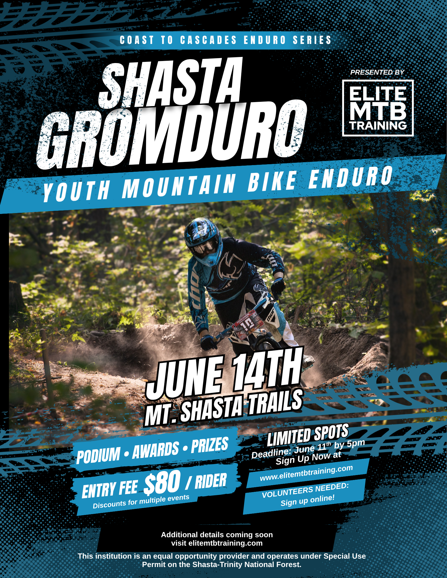 Elite MTB Training is excited to host round two of the Coast to Cascades Gromduro Series. ENTRIES ARE OPEN for all three races of the series. Follow the registration button below to get to the registration page. More specific info for the Shasta Gromduro will be arriving soon. Check back here for Shasta Gromduro updates leading up to race day.